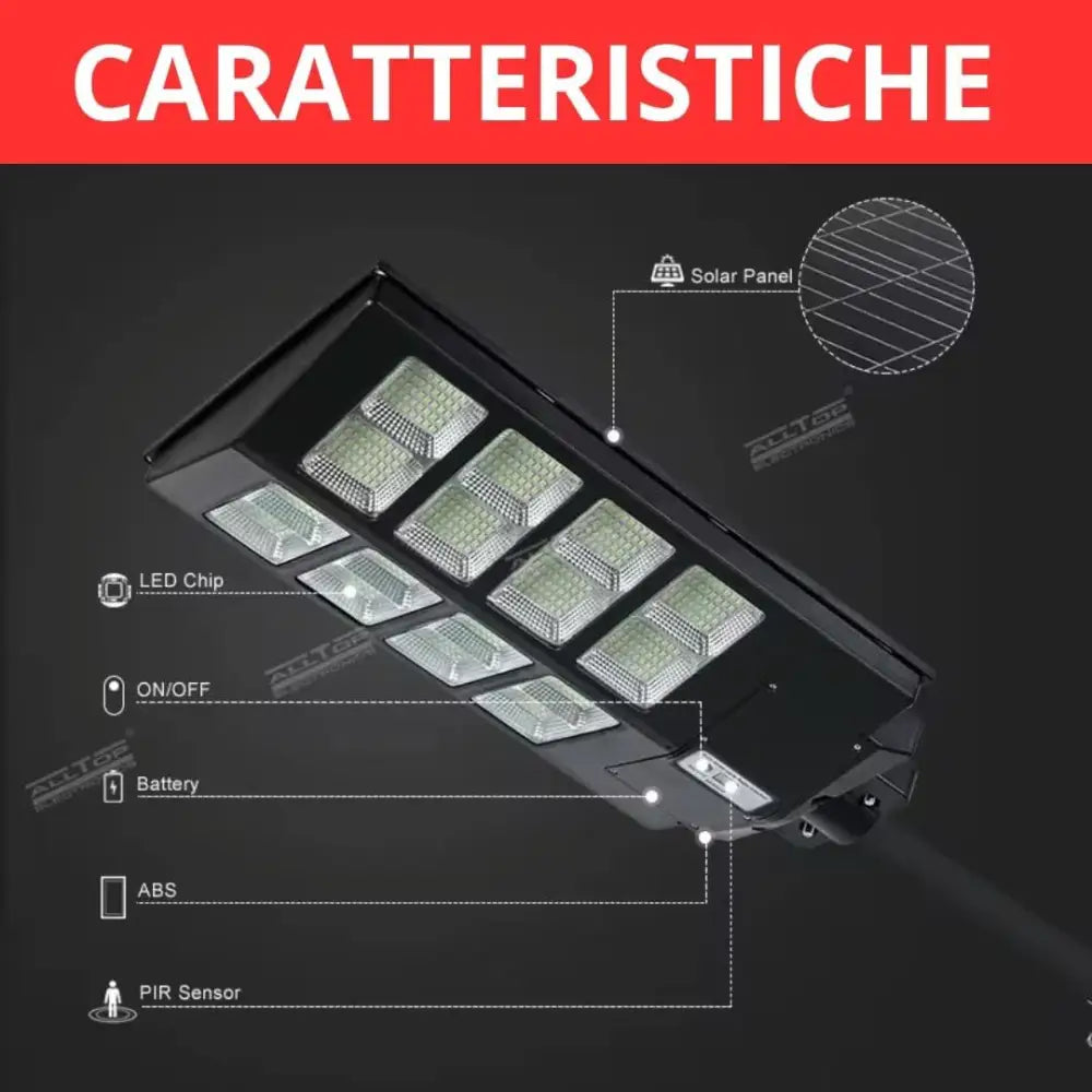 Lampione LED Esterno con Pannello Solare 1200W