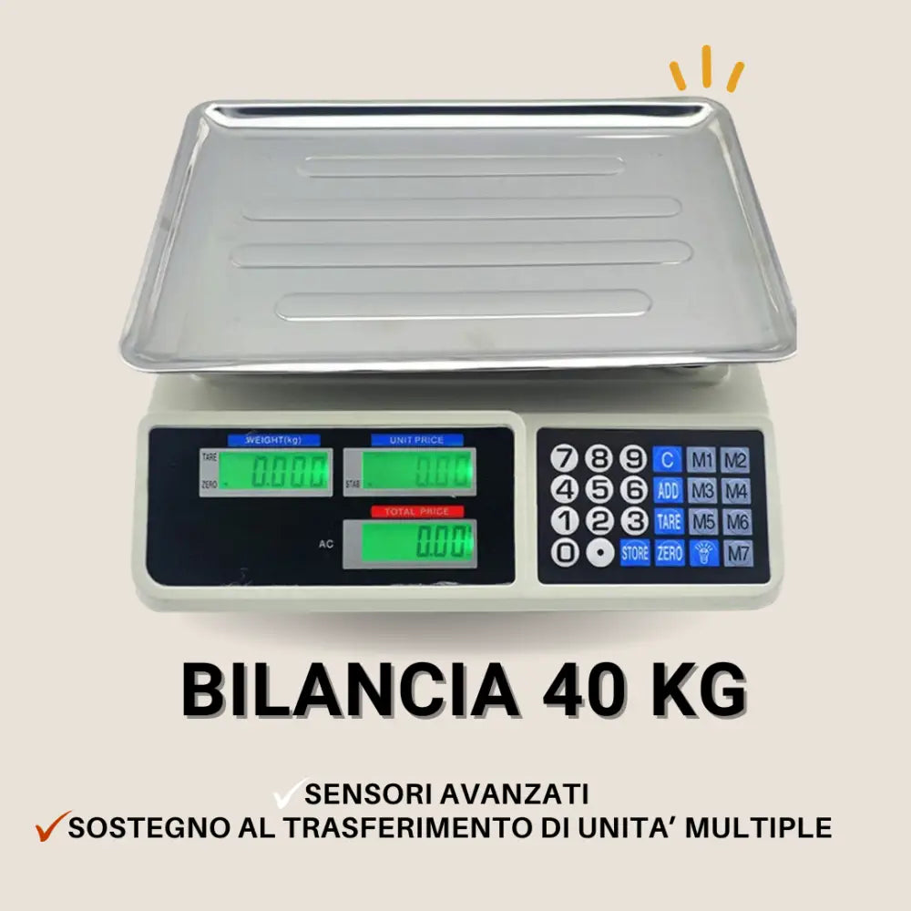 Bilancia Elettronica Professionale da Banco per Alimenti - Bilancia Digitale con 7 Tasti di Memoria e Piatto in Acciaio Inox e Schermo LCD con Prezzo