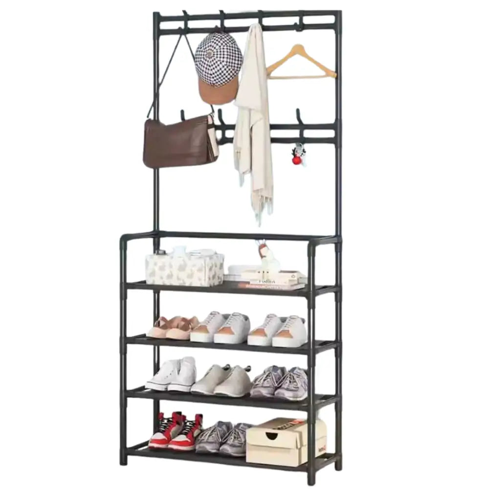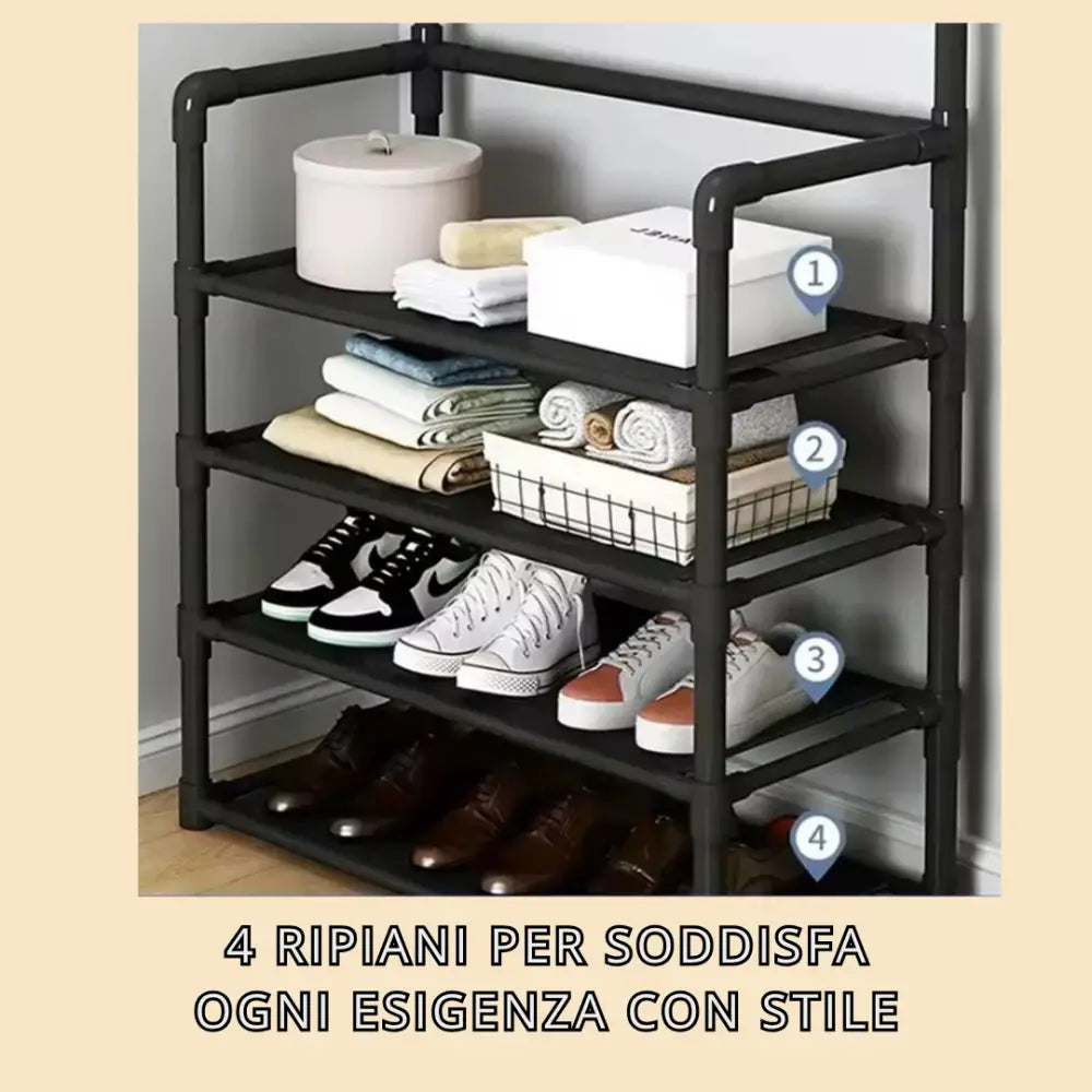 Mobile Salvaspazio con Mensole e Ganci Appendiabiti e Organizzatore per Scarpe in Tessuto | Soluzione Pratica