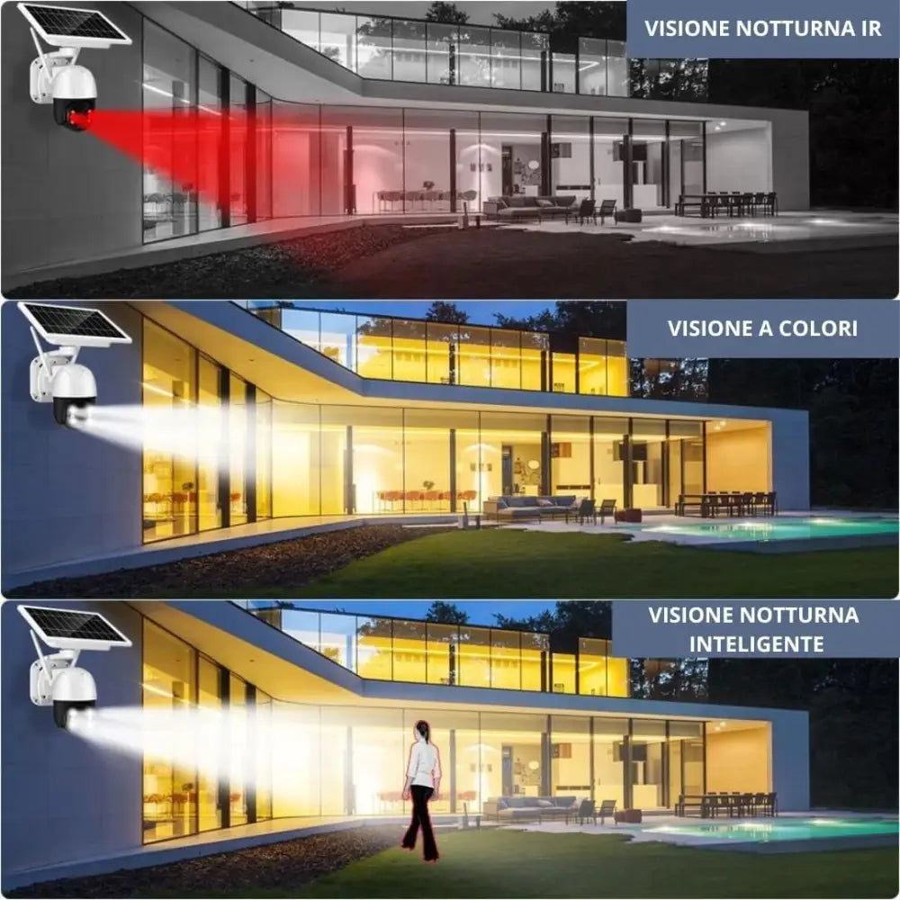 La telecamera di sorveglianza solare 2K PTZ è la scelta perfetta per proteggere la tua casa, giardino o attività senza bisogno di cavi! Con visione notturna a colori, audio bidirezionale e rilevamento intelligente del movimento, hai sempre il controllo — ovunque tu sia.