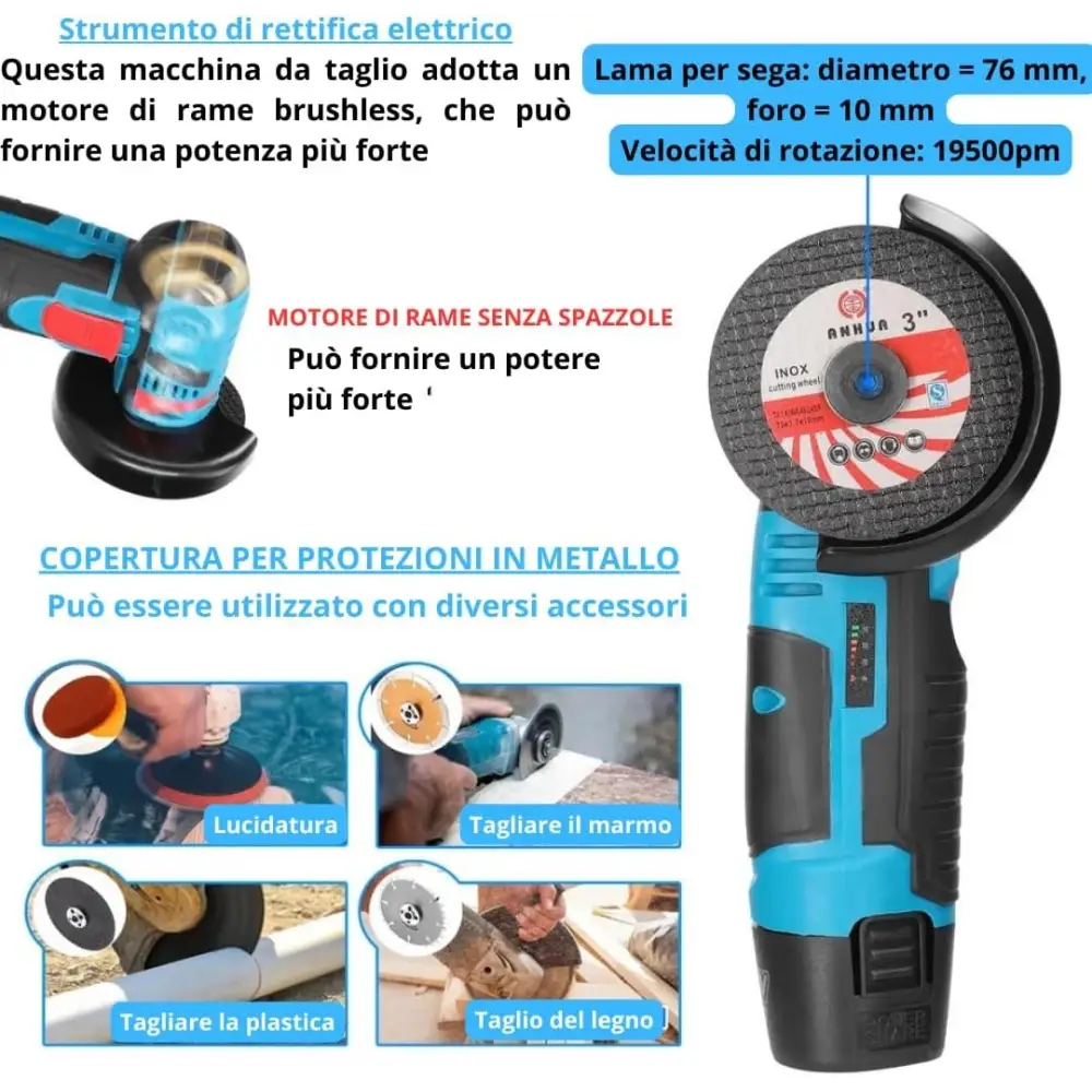 Potente e maneggevole, ideale per tagliare, levigare e rifinire metalli, piastrelle e altri materiali.